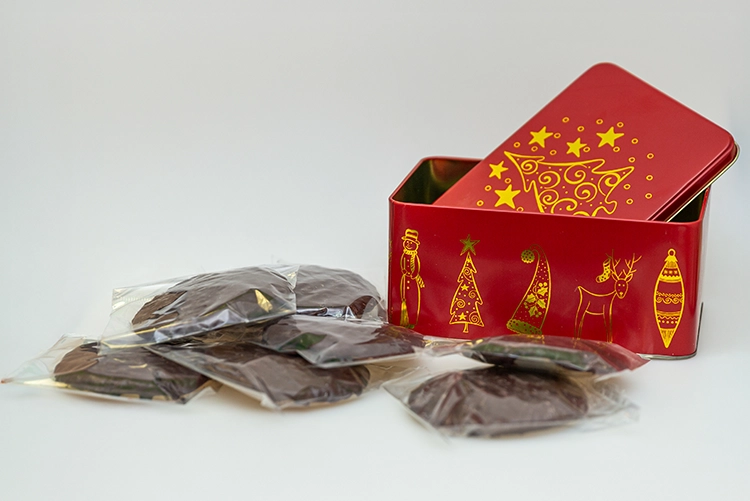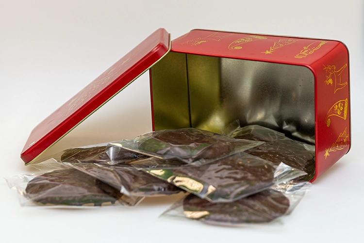 Feinste Elisenlebkuchen (520 g) in festlicher, roter Blechtruhe – ein klassisches Weihnachtsgeschenk für alle, die das Besondere schätzen.