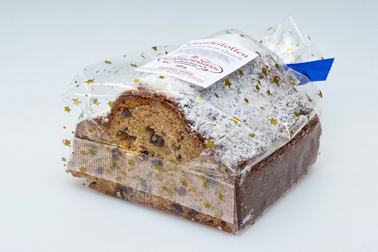 Leicht, locker und voller Geschmack: Unser Quarkstollen ist die lockere Alternative zum klassischen Butterstollen – mit frischem Quark verfeinert, besonders saftig und angenehm mild. In traditioneller Handarbeit gebacken, verbindet er echte Backkunst mit einem herrlich leichten Genussmoment.