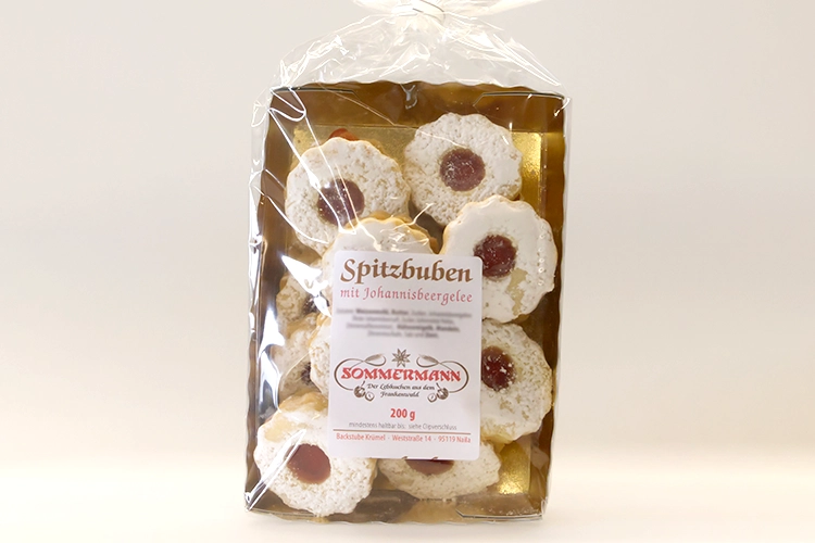 Weizenmehl, Butter, Zucker, Johannisbeergelee (Rote Johannisbeersaft, Zucker, Geliermittel Pektin, Zitronensaftkonzentrat), Hühnereigelb, Mandeln, Zitronenschale, Salz, Zimt