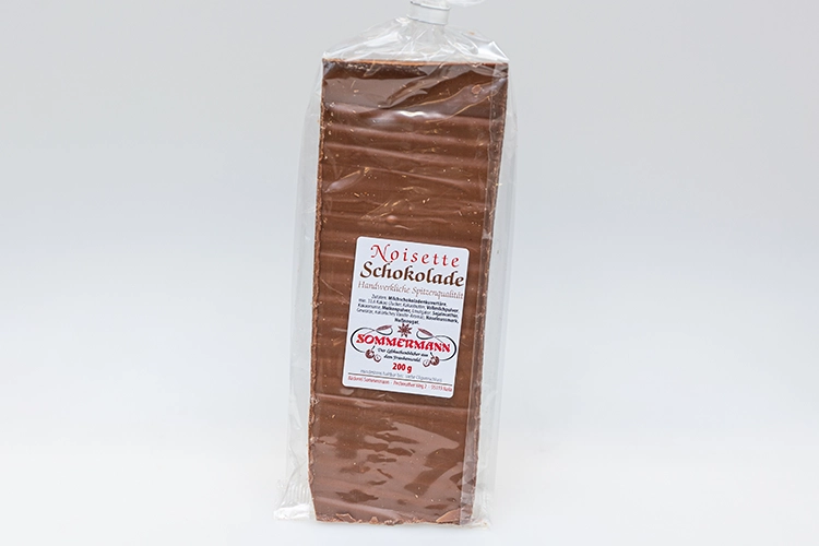 Zarte Vollmilch trifft auf cremige Haselnuss: Unsere handgemachte Noisette-Schokolade ist ein besonderes Geschmackserlebnis für echte Schokoliebhaber.